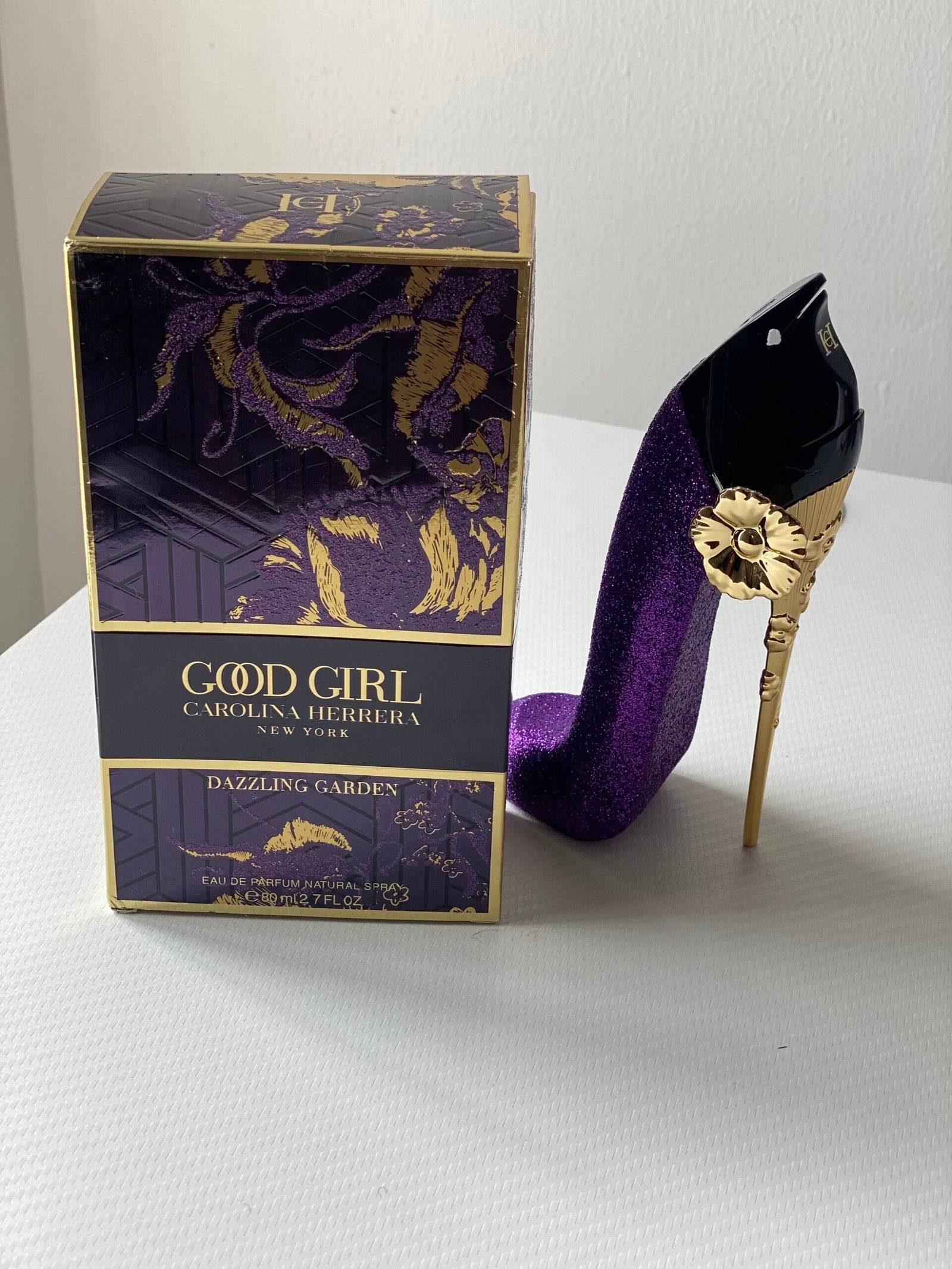 La edición limitada Good Girl Dazzling Garden es una invitación a un universo de ensueño, donde el icónico stiletto se transforma en una joya de colección. El frasco se viste con un deslumbrante acabado morado escarchado y una majestuosa flor dorada que florece sobre el tacón, reflejando una feminidad mágica y audaz.
