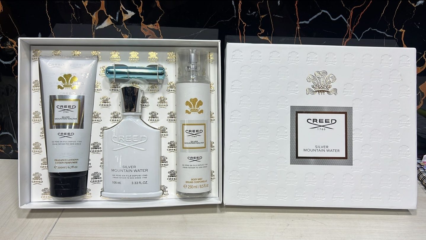 Contiene perfume, splash (loción) y crema corporal.