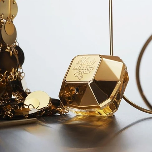 Lady Million de Rabanne es el contrapunto perfecto al icónico lingote masculino. Presentada en un frasco con forma de diamante dorado, esta fragancia es para la mujer que toma las riendas, que ama el lujo y que brilla con una confianza natural. Es un perfume vibrante y sensual que juega con los contrastes entre la frescura de las frutas y la opulencia de las flores blancas, creando una estela adictiva que no conoce límites.